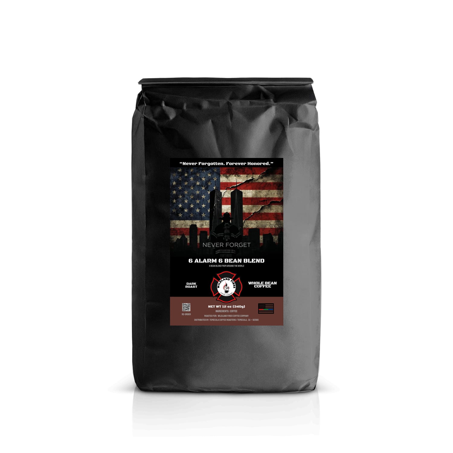 Roast: Dark Roast A bold six-bean coffee from around the world crafted as a tribute to the courage and sacrifice of firefighters. Just like the six-alarm call that rallies every hand to the line, this blend brings together six distinct beans in perfect unity — strong, balanced, and unforgettable. Fresh-roasted at the time of purchase, Six Alarm Blend carries the spirit of brotherhood, resilience, and honor in every sip. A daily reminder to Never Forget the heroes who run toward the flames when others turn away.